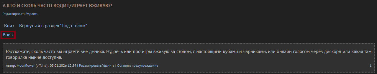 - чтобы внизу страницы форума рядом со ссылкой "вверх" над полем комментария была ссылка "Вернуться в раздел такой-то", как вверху страницы.