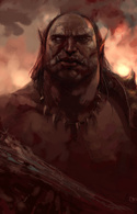 Высок и широкоплеч для его семнадцатилетнего возраста, уже достигнув размеров полноценного взрослого орка. Орочья кровь проявляется в его телосложении, острых бивнеподобных клыках и пепельно-зелёной коже. Но его черты лица мягче чем у типичного орка. Его глаза пылают беспокойным янтарным цветом.