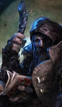 То-ли очень толстый, то-ли носящий над и под броней из шкур объемистый слой одежды. По бороде очевидно, что дварф (или гном под заклинанием Увеличения), и не носит на себе ни единой бирюлечки или значка, связывающего его с каким-бы то ни было кланом. Нетипично высок для своей расы, и для увеличения давления на окружающих опирается на тяжёлый дубовый посох. На плече сидит ворон, которого сложно отличить от чучела - хотя, чучела же не моргают? В бою так же свиреп, как сородичи воины, паладины и варвары, но в этот раз горная стойкость говорит гласом магического разрушения. Ворон Найуктиль – подобно своему обладателю, в разговорчивости не нуждается. Да и терпение их обоюдное друг к другу скорее "прохладное", нежели "дружественное".