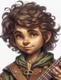 Молодой, выглядит ещё моложе. Тёмные кучерявые волосы, неопрятный потрёпанный вид путника и вечный озорной непоседливый взгляд. Среднего роста для своего народа, худощавое телосложение, но имеется пивной живот. Никогда не унывает. Не расстаётся со своим яртингом, всегда держа под рукой. В основном держится беззаботно, ходя вприпрыжку и улыбаясь.