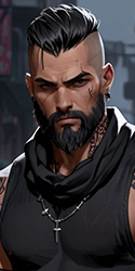 БЗИКИ Слишком много курит: Сигарета в его руках — не привычка, а ритуал. Каждая затяжка — попытка задуть тлеющий внутри адреналин, но пепел всё равно осыпается дрожащими движениями. Он слишком часто прячет лицо в дыму. Слишком доверяет никотиновому туману, чтобы скрыть подёргивание века, когда ситуация выходит из-под контроля. И когда в самый неподходящий момент начинается этот проклятый кашель — сухой, надрывный, — становится ясно: У каждого есть свои слабости. Последствия ПТСР Война и смерть не проходят бесследно. Когда его взвод погиб почти в полном составе, что-то внутри сломалось. Начались ночные кошмары и пробуждение с пистолетом в руке. Навязчивый тремор в левой руке (особенно в стрессовых ситуациях). Внезапные провалы в памяти при которых мог забыть имя союзника, но помнить каждую деталь боя 10-летней давности. Проявление агрессия в беспомощности, если не может спасти или помочь, ломает предметы вокруг (но никогда не бьёт людей). Иногда напивается, пытаясь утопить воспоминания. А если долго сидит без дела, но начинает перебирать, чистить и смазывать пистолет.Жизненное кредо: «Я иду не потому, что знаю все тропы. А потому, что знаю, где кончаются все правила» Он из тех, кого уважают, но не любят. Кого нанимают, но не доверяют. Чья цена высока — но платят без торга, потому что знают: он доведёт.