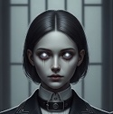 Эйш не стремится к показному уродству, но её внешность всё равно несёт на себе отпечаток её "искусства". Она обладает неземной, почти идеальной красотой, но в ней нет тепла и человечности. Её кожа кажется слишком гладкой, без малейших изъянов, что делает её похожей на фарфоровую куклу. Глаза Эйш — это её самая заметная черта: они выглядят так, будто в них нет зрачков, а радужная оболочка светится тусклым, холодным светом, что придаёт её взгляду отрешённость и пугающую пустоту.