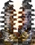 Статный мужчина с хорошей выправкой. Лицо, с годами огрубевшее и всегда будто обгоревшее под солнцем, часто сохраняет стоическое выражение, но в глазах - постоянная тревога. Голос - быстрый, надрывный. Поношенную чешуйчатую броню снимает только на ночь.