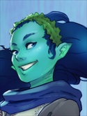 Девушка водная дженази 19 лет от роду и 170 сантиметров ростом. Планарное наследие проявляется в бирюзовом цвете кожи, темно-синих волосах, заостренных как плавники ушах и едва заметных жабрах на шее, а в остальном она мало отличается от человека.