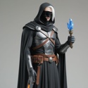 Глаза, тёмные как пустота: Ваши глаза полностью темны и не имеют радужки; вы получаете черту Ночное Зрение. Бритая голова, черные, абсолютно черные глаза, светлая кожа. Одет в красный балахон покрывающий легкий панцирный доспех с шлемом(приспособленный под БМУ), и боевой пояс. Имеет аугментированный стрелковый БМУ со снайперской винтовкой с лазерным прицелом. Носит оружие особенно гордясь наследственным лазпистолетом.