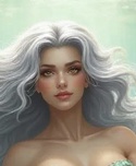 Светлая, жемчужная кожа, волосы тоже светлые, с переливами от зеленого к голубому. Глаза золотые