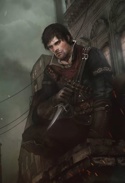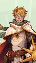 Когда батя ушел за хлебом в загробный мир, сынушка разревелся, надел свои доспехи, взял двуручник и пошел куда глаза глядят, чтобы найти убийц. Правда, пока он путешествовал, он где-то всрал доспехи. Вскоре, он прибился к компании наших приключенцев. В замок ему возвращаться нельзя - прибьют коллекторы, он задолжал за замок больше чем заработал этот город за год.