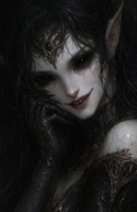 Теперь Морвен видел, что, в отличие от водяницы, незнакомка была одета: на ней было облегающее открытое платье, чёрное с золотом, из странного, напоминающего текстурой шёлк, материала. Такое не постеснялась носить бы столичная знать — а может, оно бы пришлось по статусу самой королеве. Её пальцы заканчивались длинными, острыми ногтями, зубы тоже были чуть заострёнными — маленькими, аккуратными, удивительно белыми.