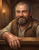 Скуфоватого вида мужчина чуть выше среднего по людским меркам роста. На вид лет тридцати пяти. Полноват, но в движении не выглядит так, словно бы ему это хоть сколько-нибудь мешает. Брюнет, но волосы уже начали седеть. На макушке вот вот начнёт проявляться залысина. Носит опрятную клиновидную бородку. Глаза живые, внимательные. Цвет глаз карий. Харя широкая, но добрая. На одной из рук заметен след, предположительно, от давно зажившего, но серьёзного ожога. Одежду носит просторную, особое внимание уделяя лишь рукавам: они не должны мешать выполнять работу.