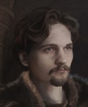 Статный молодой человек лет двадцати пяти с чем-то отроду. Внешность (бледно-розовая кожа, карие глаза, тщательно прибранные каштановые волосы, ухоженная короткая борода и усы), акцент (безупречный) и манеры (исполненные достоинства и дающиеся без видимых усилий) указывают на то, что он талданец, и к тому же аристократ... или кто-то стремящийся производить такое впечатление. Учитывая эти признаки и заметную воинскую выправку, мозоли на руках скорее от оружия, чем от орудий труда. При этом шрамов почти нет. По мере нынешних возможностей следит за своим внешним видом и одеждой. Вежлив, красноречив, позволяет себе шутки и игру слов. Однако склонен к некоторой задумчивости и меланхолии, и потому его общительность может казаться натянутой.