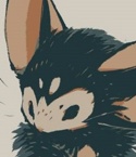 Окрас – Черный, но с белой мордочкой и животом Физические особенности – Необчыно большие уши, два выразительных белых пятнышка на месте бровей и знак μ на задней левой лапке