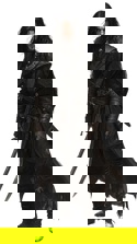 Высокий, худощавый и поджарый мужчина в потрепанной темной кожаной одежде. Узкое небритое лицо с темными кругами под глазами. Рука постоянно лежит на рукояти сабли.