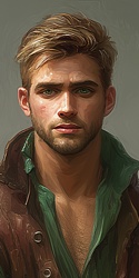 Возраст: 23 года Размер: Средний Рост: 188 см Вес: 83 кгВысокий стройный парень с небрежно подстриженными тёмно-русыми волосами и вечной небритостью на лице. Всё время настороженные зелёные глаза, как кажется, всегда ищут кого-то и что-то вокруг, и при каждом резком звуке он всегда едва заметно вздрагивает. Неулыбчивый, но умеет удачно пошутить и обладает мрачным, но всё же чувством юмора. Всегда двигается мягкой, почти неслышимой поступью. Единственная сразу заметная слабость — обожает курить трубку. Никогда не расстаётся со своим верным спутником — молодой рысью по кличке Скадах.