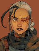 Сероглазая загорелая девушка лет тридцати. Почти полностью седые волосы и едва зажившие шрамы на левой стороне лица намекают, что за это время она успела повидать некоторую ерунду. Бережёт левую руку и чуть заметно припадает на левую ногу. Носит тёмную немаркую одежду и без крайней необходимости не снимает затасканных толстых перчаток. Выражение лица обычно раздражённо-брезгливое, но вы не обращайте внимания, это просто паралич мышц. А так-то Джуть — душка и ласковая женщина.