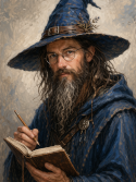 Худощавый мужчина средних лет. Постоянно ходит в рабочей мантии и шляпе, даже у себя дома. Носит очки.