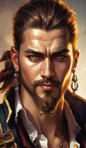 Высокий и поджарый. Аккуратно выбритое лицо. Золотые украшения с драгоценными камнями: серьги, цепи, вплетенные в бороду бусины - наравне с одеждой демонстрируют успешность в выбранной карьере. Спина и плечи превратились в полотно из сложного переплетения множества несвязанных между собою выцветших татуировок, набитым ему по большей части не по его воле за долгие годы бесправия.