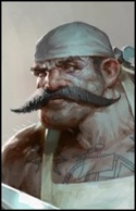 Огромный головорез с густыми закрученными усами, покрытый татуировками низкого качества и сомнительного происхождения. Не сказать, чтобы он был атлетически сложён, но вы бы точно не хотели с ним драться.