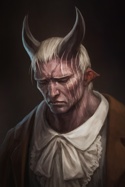 Элиот резко развернулся на звук шагов, его рука инстинктивно легла на эфес. Перед ним стоял тифлинг — огромный, рогатый, с молотом в руках. «Демон?» — мелькнула первая мысль, но затем он увидел потрёпанную форму Академии и тот самый «скорбный, по-детски плаксивый» взгляд.