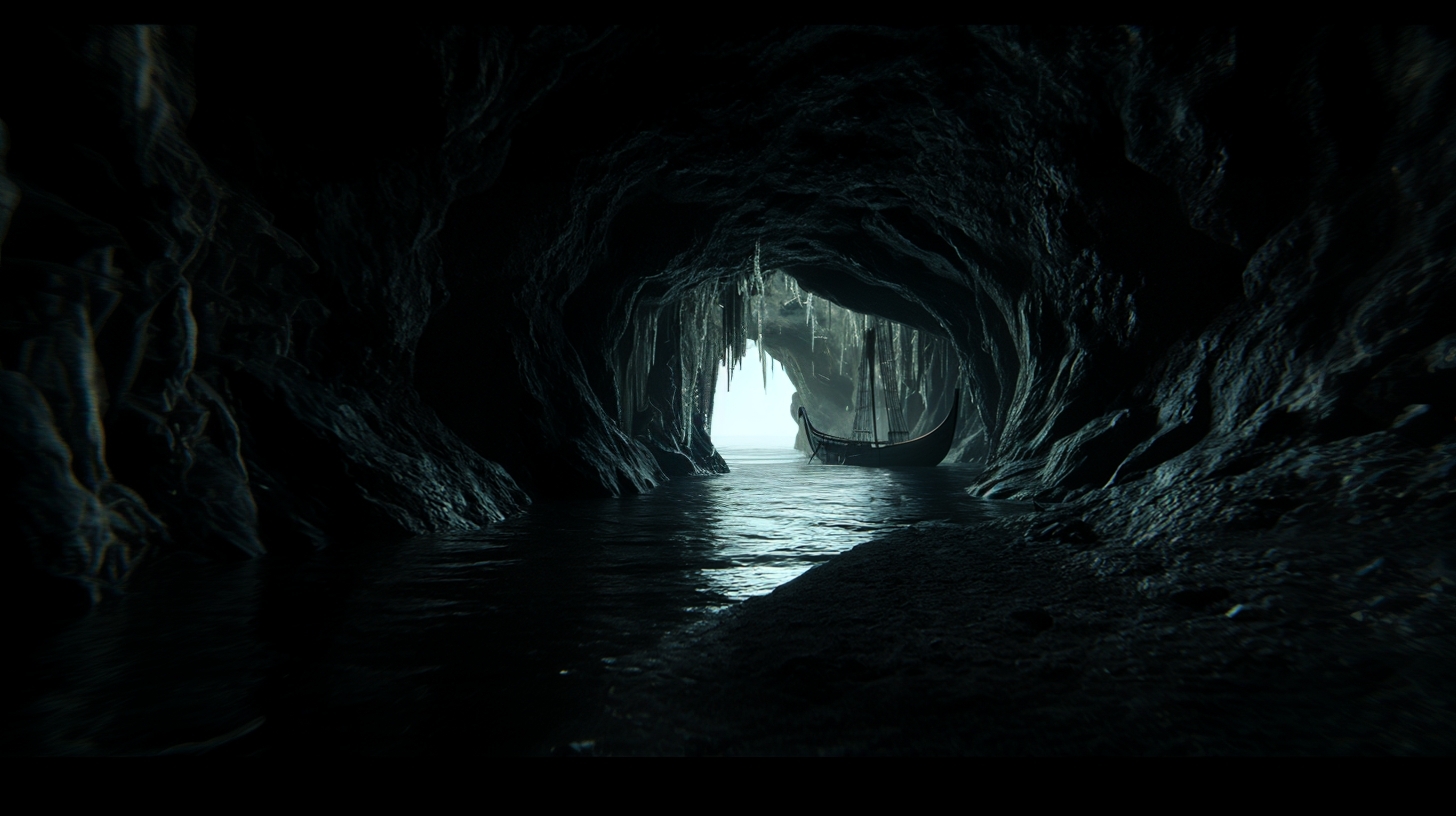 Проход, частично затопленный, похоже, ведет наружу. Скоро и факел не понадобился. Вдвоем Виго и Ингвар, пройдя дальше, наконец увидели свет дня. А еще - силуэт ладьи, боги знают сколько лет стоящей на причале в узком устье расселины среди скал.