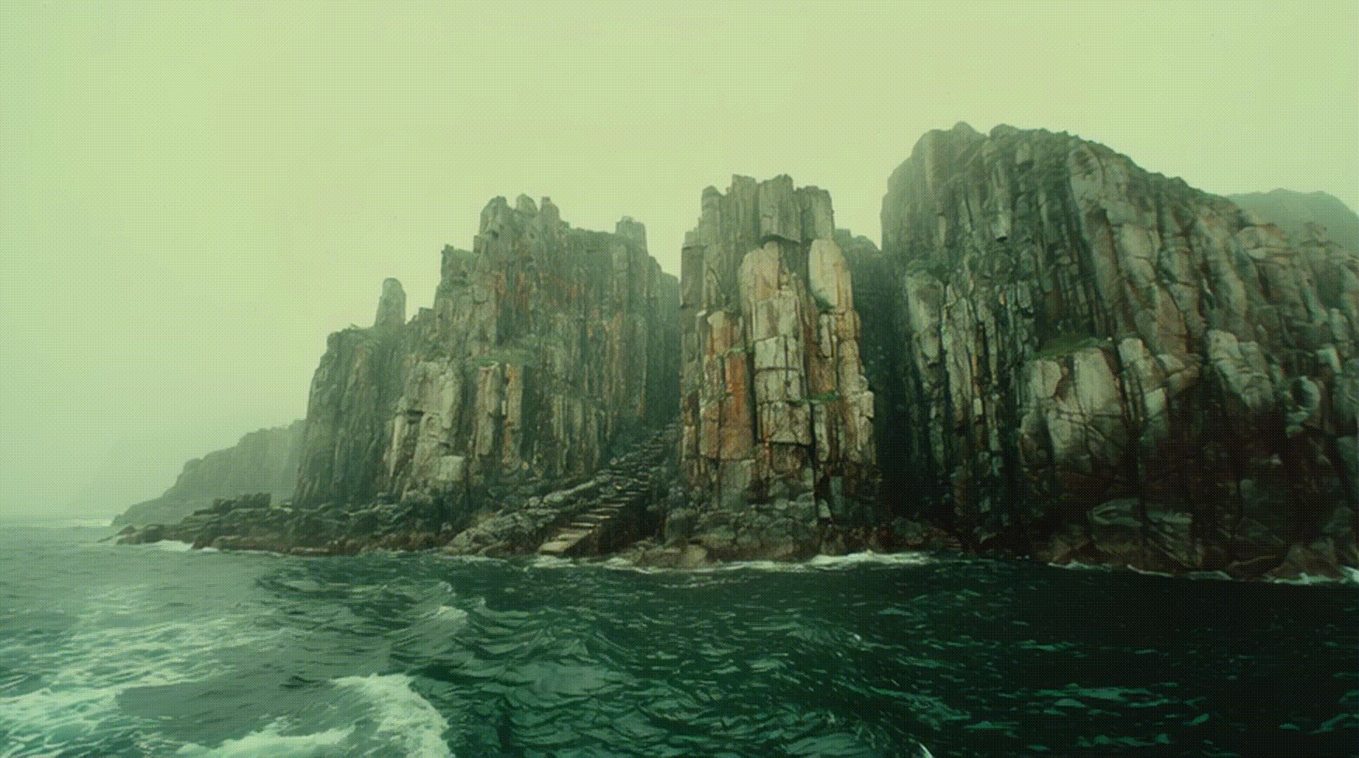 Воодушевленные находкой ворона, Виго и Ингвар отчаливают от острова в направлении, которое Баянду указывает, время от времени поднимаясь в воздух. Навигация с помощью одного весла утомляет, приходится бороться с волнами и часто сменяться, давая отдохнуть немеющим от гребли рукам. Спустившийся на море пополудни туман скрывает видимость, окружая двух путников мглистой стеной. Но вот из дымки проступают очертания острова, негостеприимные скалы, тысячелетиями подтачиваемые морем. Повинуясь указке ворона, Виго и Ингвар огибают остров с запада, стараясь держаться подальше от торчащих коварных скал. Наконец видят подобие причала у подножья отвесного утеса, а также вырубленную в камне лестницу, ведущую наверх...