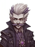 Доведя группу до единственной открытой двери, женщина завела их внутрь через стальной порог и плотно прикрыла ее за собой. Кабинет Паучьего Ведьмака был огромен,- на глаз здесь было футов сорок в длину и ширину, не меньше,- но большая часть его была заставлена множеством коробов и кипами бумаг, отчего свободного места особо не было. Соседняя от прохода стена была огромным окном в пол, за которым был виден ночной луг, ярко освещенный полной луной - также, возле нее стоял широченный стол из мореного дуба, за которым в кресле сидел хозяин этого дома - это был мужчина лет тридцати в золотистого цвета камзоле с цепким и пронзительным взглядом. Бросая на стол горсть цветных камешков раз за разом, он увлеченно их разглядывал и делал пометки пером на куске пергамента, не обращая большого внимания на зашедших до тех пор, пока семеня ногами и аккуратно лавируя между завалами к нему не подплыла приведшая их сюда женщина, начав что-то активно шептать ему на ухо. Рассеянно ее слушая, ведьмак с интересом разглядывал группу и лишь когда та закончила и спешно удалилась из помещения, наконец заговорил