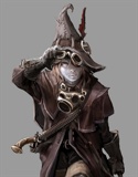 В руках, на поясе, боеприпасы:Два кинжала – каждый 1к4 колющий, 1 фнт. Лёгкое, метательное (дис.я 20/60), фехтовальное