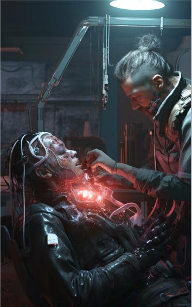2 Авантюрное Помимо имлантов на 2000 у.е., ты можешь выбрать себе одну критическую травму и получить дополнительный имплант её нейтрализующий (часть тела + 1 модуль). Но ты не знаешь степени потери осознанности, к которой это всё привело. 6) Опиши внешность персонажа и его историю. 1 Можешь взять аватару, но также можешь и не ставить аватары вообще, описав внешний вид текстом достаточно подробно. Если берём аватару, то не мультик и не кадр из фильма. Ориентируемся на арт из примеров модуля по уровню детализации и кислотности цветовой палитры. «Стиль – это всё». 2 История персонажа — это то важное, что случилось в его жизни и определило где и как он есть сейчас, почему он на улицах с остальными и как к ним относится. «Отношения — это всё». Да, он ведь как-то относится к каждому из команды, вот и напиши немного об это для каждого сопартийца. Не надо писать трактаты личности по этому поводу, но создать какую-то настройку нужно. Она не отлита в стали, после дела или прямо на нём, твоё отношение может измениться. А ещё он как-то относится к Городу, к своей работе, к деньгам…     Импланты Импланты состоят из кибер-частей тела со слотами и устанавливаемых в слоты модулей, что приводит к потере осознанности (ПО):