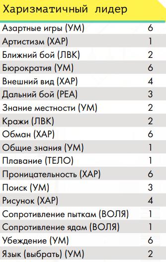 Примечание: Анна может распределить шаги развития таким образом, даже если она уже делала шаги развития лидерства как одного из навыков, присущих народу людей (см. выше), — ограничение в 10 шагов развития на навык действует только при распределении конкретно этих 40 шагов.