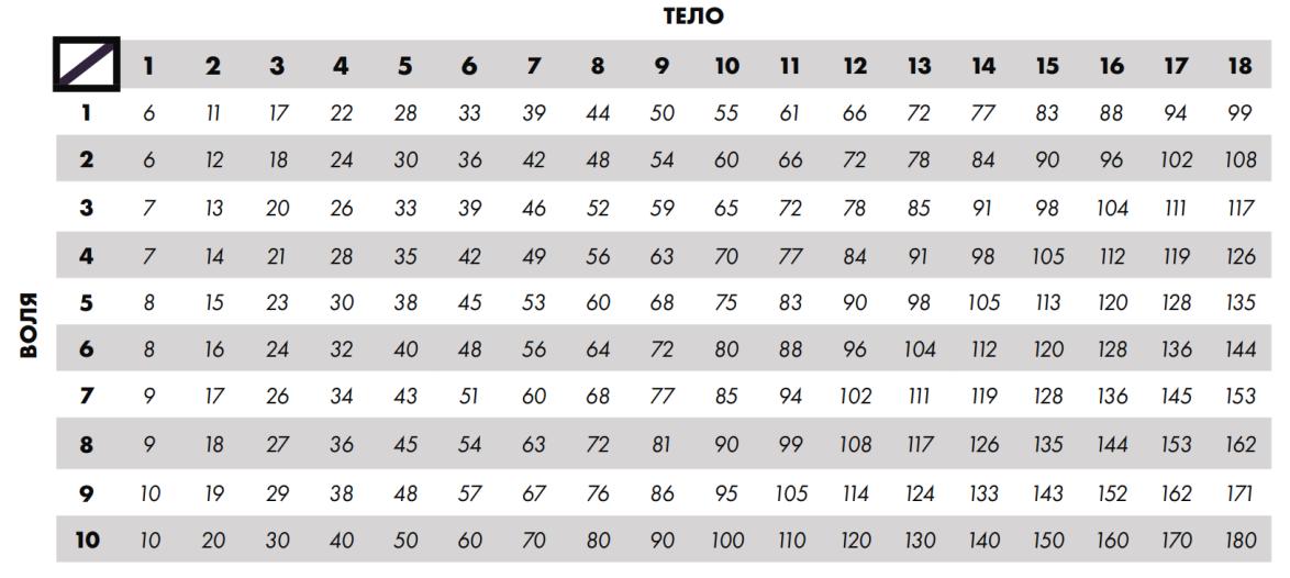 Лечение - серьёзный разрыв мышцы частично заживёт за (30 – рейтинг выносливости) дней, после чего модификатор ко всем проверкам, требующим задействовать повреждённую конечность, уменьшится до –10. Разрыв заживёт полностью ещё через (30 – рейтинг выносливости) дней. Навык лечения тут мало чем поможет — разве что позволит понять, почему повреждённая часть тела так болит и что лишний раз её лучше не тревожить. Таблица размеров существ • после увеличения монстра на одну ступень размера, увеличь его силу и выносливость на 10, а проворство уменьши на 5; • после уменьшения монстра на одну ступень размера, увеличь его проворство на 10, а силу и выносливость уменьши на 5. 2.2 Клинч• Заяви клинч и пройди встречную проверку навыка "рукопашный бой (кулачное)" • При победе ты взял в клинч противника и он обездвижен: в свой ход обездвиженный персонаж не может совершать перемещение, а на все проверки, которые требуют так или иначе двигаться, налагается модификатор –10 (это касается и проверок, связанных с пребыванием в клинче) • Если в начале своего первого хода в клинче твой противник не участвует в ближнем бою и у него больше преимуществ, чем у тебя, то он может выйти из клинча, совершив перемещение; иначе он должен пройти встречную проверку характеристики "сила" на борьбу в клинче • В случае победы он может либо нанести тебе (рейтинг силы + уровень успеха проверки силы) пунктов урона без учета класса брони (переверни результат проверки силы для определения зоны попадания); либо обездвижить тебя; либо избавиться от (1 + уровень успеха проверки силы) состояний обездвиженности • Если он проигрывает проверку силы, то ты получаешь преимущество, а он не может ничего сделать в этот раунд • Персонаж, не находящийся в клинче, может атаковать любого из находящихся в клинче противников; при этом он получит модификатор +20, если его цель — противник с меньшим запасом преимуществ, и +10, если с бо́льшим • Пока персонаж находится в клинче, ведущий, если сочтёт это уместным, может позволить ему проходить не только встречную проверку силы, но и другие проверки: языка (магический), чтобы сотворить заклинание; обаяния, чтобы уговорить противника отпустить его (или лидерства, чтобы приказать ему это сделать) и т. п. • Учти модификаторы психических особенностей (см. раздел 8 данного конспекта "Боевой дух") 2.3 Атака в дистанционном бою• Пройди обычную проверку навыка "стрельба" для стрелкового оружия твоего типа, но только если ты сам не участвуешь в ближнем бою • Стрельба - это, как правило, не встречная проверка: но на ближней дистанции стрелкового оружия (ДБ/10) от выстрела можно защититься щитом встречной проверкой навыка "рукопашного бой" (только если в руке есть щит уровня 2 и выше) или попытаться пройти проверку навыка "уклонение" (наличие щита или знание уклонения дает вам выбор, защищаться или нет - FAQ от разработчиков); чтобы дистанционная атака попала в цель в таких особых встречных проверках (когда противник может защищаться), проверка попадания стрельбы должна быть успешной (если цель стрельбы провалила проверку с меньшим уровнем успеха, чем стрелок, который тоже провалил проверку, то стрелок всё равно не попадает - FAQ от разработчиков), при этом отрицательные уровни успеха защищающегося не учитываются (провал на проверке уклонения не увеличивает урон стреляющего); дост