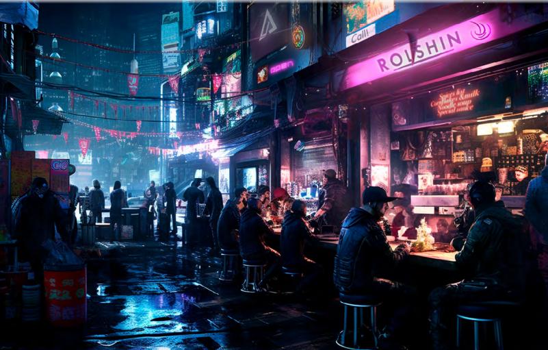 • Генеральное Планетарное Антивоенное Агентство (ГПАА) силой космических военных спутников ограничивает военные конфликты и запрещает ядерное оружие.  • Все города ещё помнят эхо массовых войн, в которые вмешалось ГПАА, потому оружие и бывшие солдаты на их улицах – норма, но эффективное оружие можно покупать только по лицензии и с внесением в базу данных владельца, а военный класс снаряжения официально запрещён, если ты не в микро-армии элитной корпорации, которая отчитывается за такие группы напрямую ГПАА. Любые боевые имланты, кроме «лазерной кромки» в ногтях, приравниваются к военному оружию.  • Всюду смешение культур и народов. Можно встретить Нео-Японский колорит в Пост-Арабских странах так же часто, как и Немецкий прагматизм в Латинской Америке.  • Медицина и импланты лечат практически всё, в том числе радиационные поражения, и продлевают срок жизни до огромных пределов. Рукотворная красота тела доступна, если есть деньги. Болезни, передающиеся половым путём, побеждены после полной расшифровки генома человека, так что ночные приключения опасны скорее необходимостью шастать ночью по улице, чем выбранным партнёром на ночь.  • Города управляются корпорациями, а то, до чего они не дотянулись – частными рекламными агентами и уличными бандами. Средства вертикального взлёта и посадки продаются по дорогущей лицензии для богачей, общественного транспорта и служб города, а ты ездишь по избитым дорогам на избитой тачке и стоишь в пробках.  • Ты можешь поехать почти куда угодно и получить там бесплатное жильё типа «11 квадратных метров без внутренних перегородок» в дрянных условиях, только вот ты нигде не нужен. Корпорациям нужны ценные специалисты, а вокруг – перенаселение.  • Живое деторождение и нормальная семья – роскошь для богатых, потому что остальные люди не имеют к этому мотивации, будучи зажатыми между бедностью перенаселённости городов и интересами корпорантов, как между молотом и наковальней. Корпоративный вариант для ценных сотрудников – ребёнок из пробирки.  • Изоляция личности среди перенаселённости — это проблема. Если тебе одиноко, то работа на корпорацию и культурные заведения, которые эта работа предоставляет, – лучший повод для знакомства с человеком твоего круга общения, ведь на ресурсах знакомств в Сети – наёмники или проститутки. Иначе – твой путь в уличные банды, потому что там, иногда, о тебе реально кто-то может позаботиться. У сёрферов по волновой сети (профессиональных хакеров) своя туса, так что они знакомятся при передаче секретов своего ремесла.  • Изобретён плазменный источник энергии и двигатель высокой мощности на его фреймворке. Нефть теперь используется только для создания пластика и синтетических масел.  • Изобретена волновая сеть, на которой работает всё (в том числе импланты и виртуальная реальность полного погружения), с истинной скоростью света. Никаких проводов и ожиданий: на гравитоны записывается любая информация, вплоть до полного сознания человека. Вот только ходят легенды, что в этой Сети обитают и исконные её жители, способные сожрать разум человека, а некоторые из них прорывались в физический мир, захватывая тело человека, андроида или клона.  • Доступна технология клонирования, но перенос сознания в клон по известным технологиям невозможен без его постепенной дегра