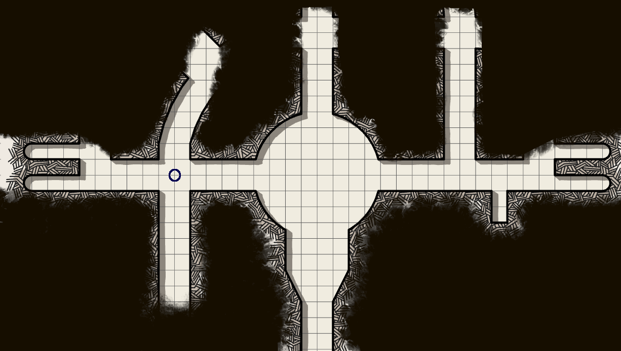 По мере продвижения по левому коридору становилось понятно, что он ведёт в центральную ротонду усыпальницы. Пройдя первое ответвление, Ральф с Рориком заметили, что отходящий коридор на всю длину светового пятна был прямой и без развилок. Однако за пределами светового пятна Рорик заметил перекрёсток нескольких коридоров.