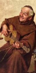 Сам же старик, о котором шла речь, тем временем уплетал за обе щёки, кои вернули себе здоровый румянец; глаза Танцора, увидевшего бутыль с вином, заблестели, словно два уголька, а рука потянулась к напитку богов сразу же, как утолил свою жажду священник.