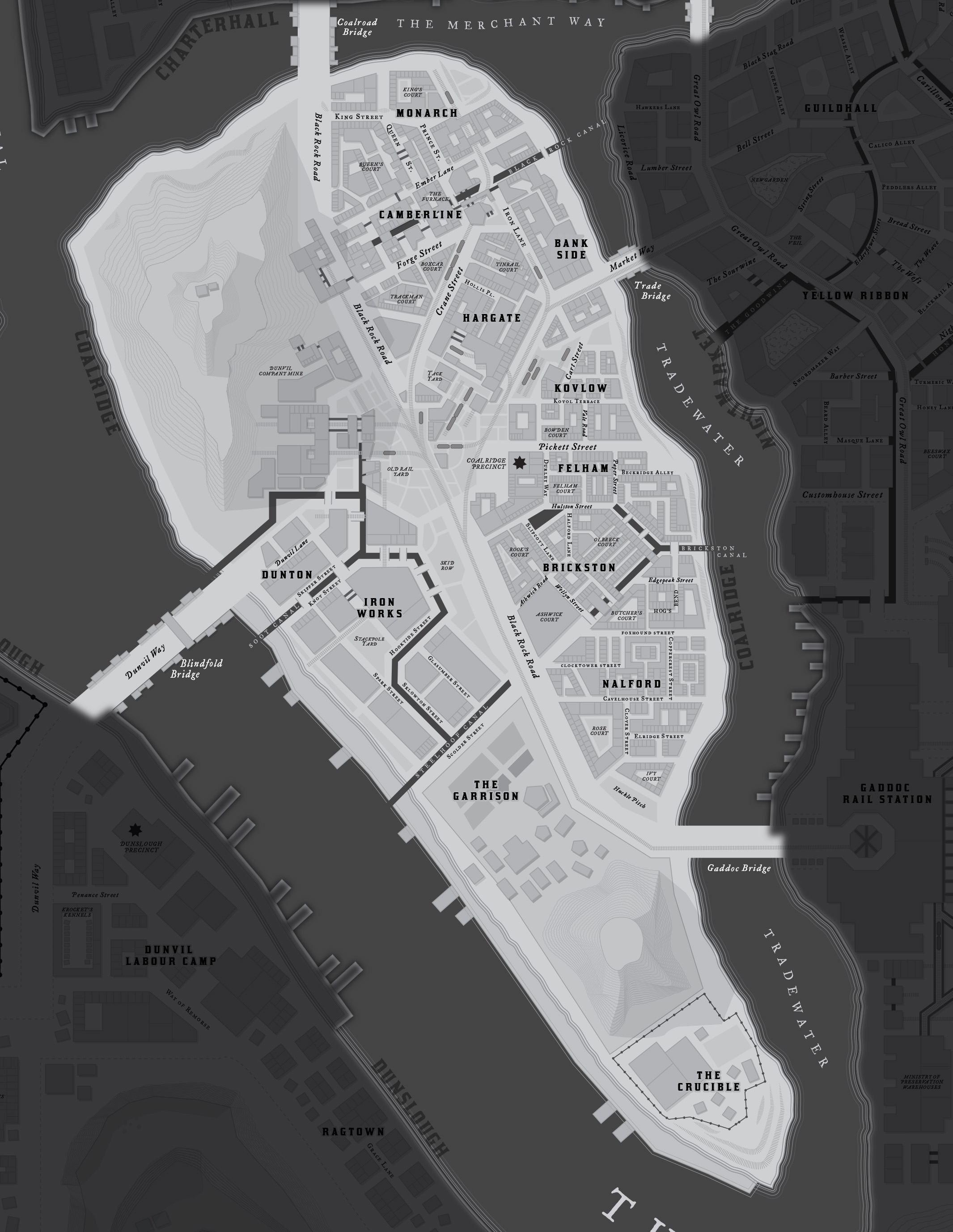 Совет управляет многими городскими службами. Закон и порядок блюдут патрули Синих Мундиров; их инспекторы расследуют криминальные дела и собирают доказательства для судей в Чартерхолле. Бригада, известная в народе под именем «Саламандры», тушит пожары и устраняет последствия природных катастроф. А с угрозами мистическими, призраками и демонами, борются Смотрители, чья личность скрыта от мстительных духов за казёнными бронзовыми масками.