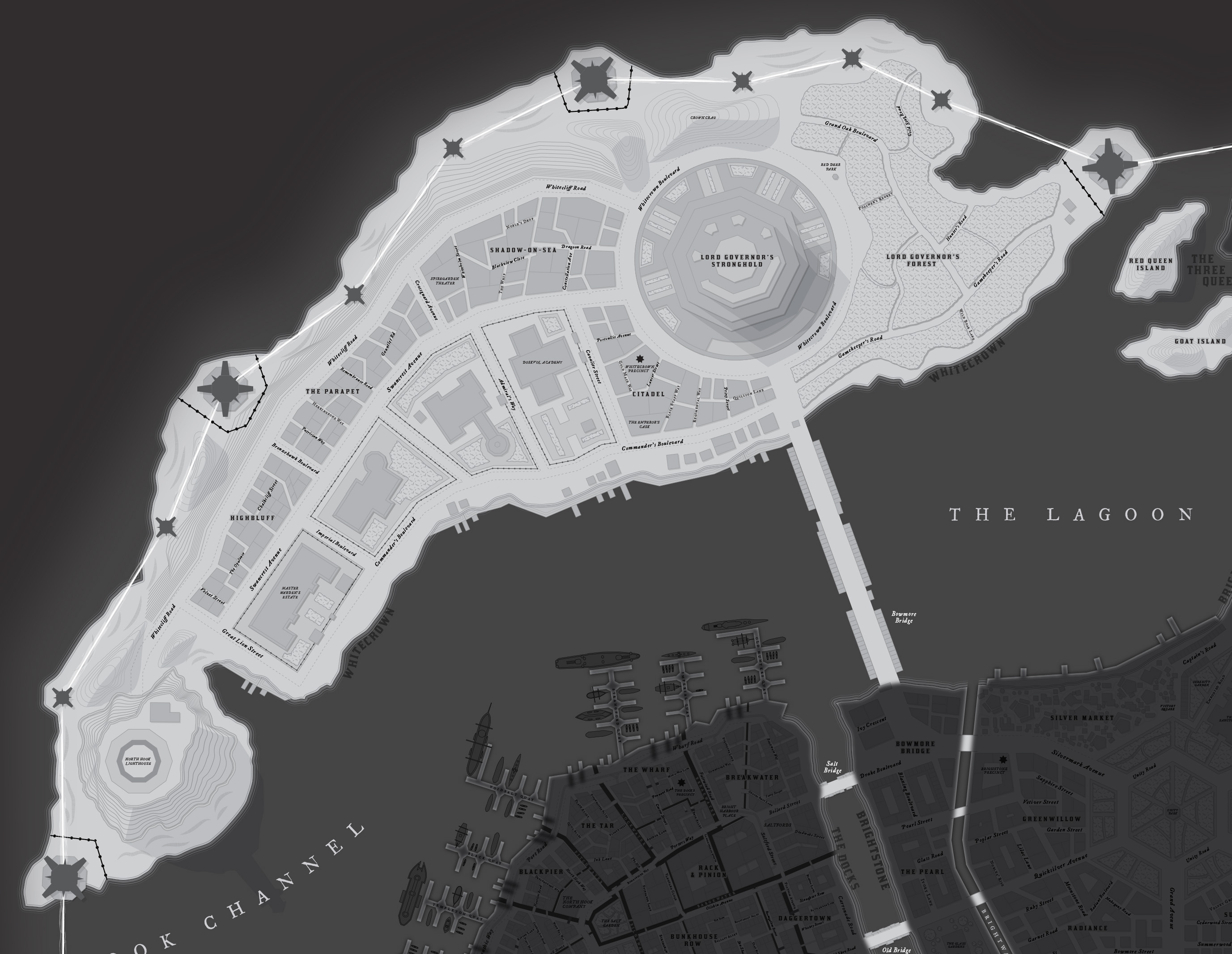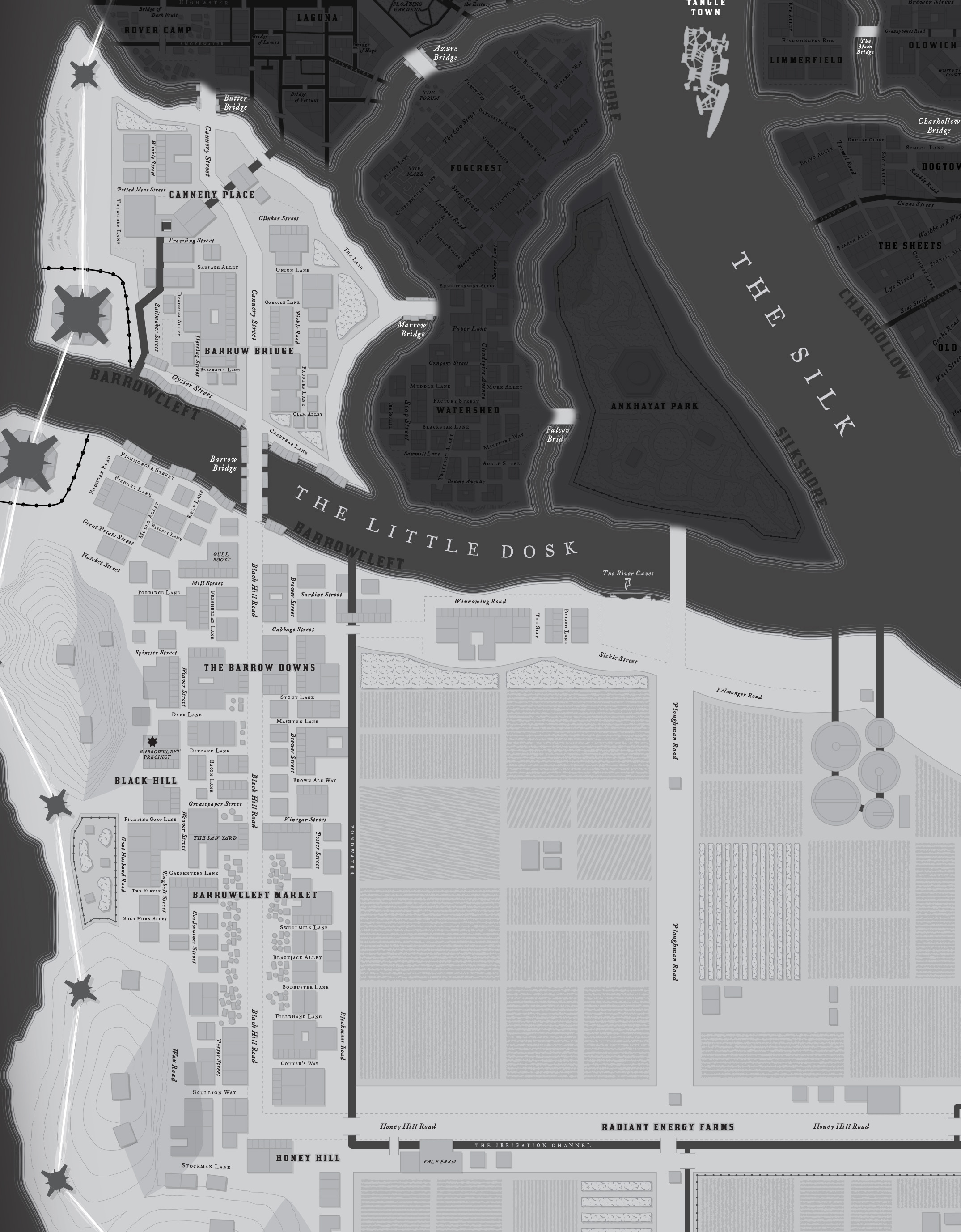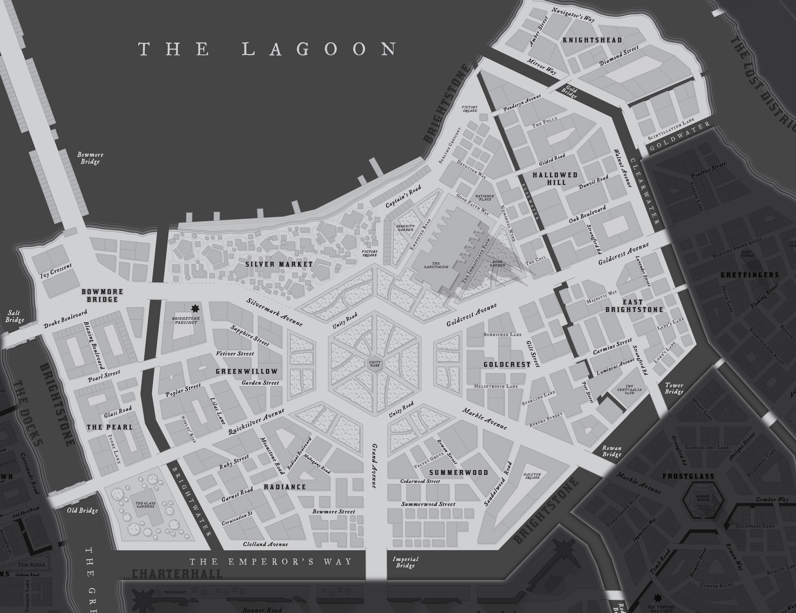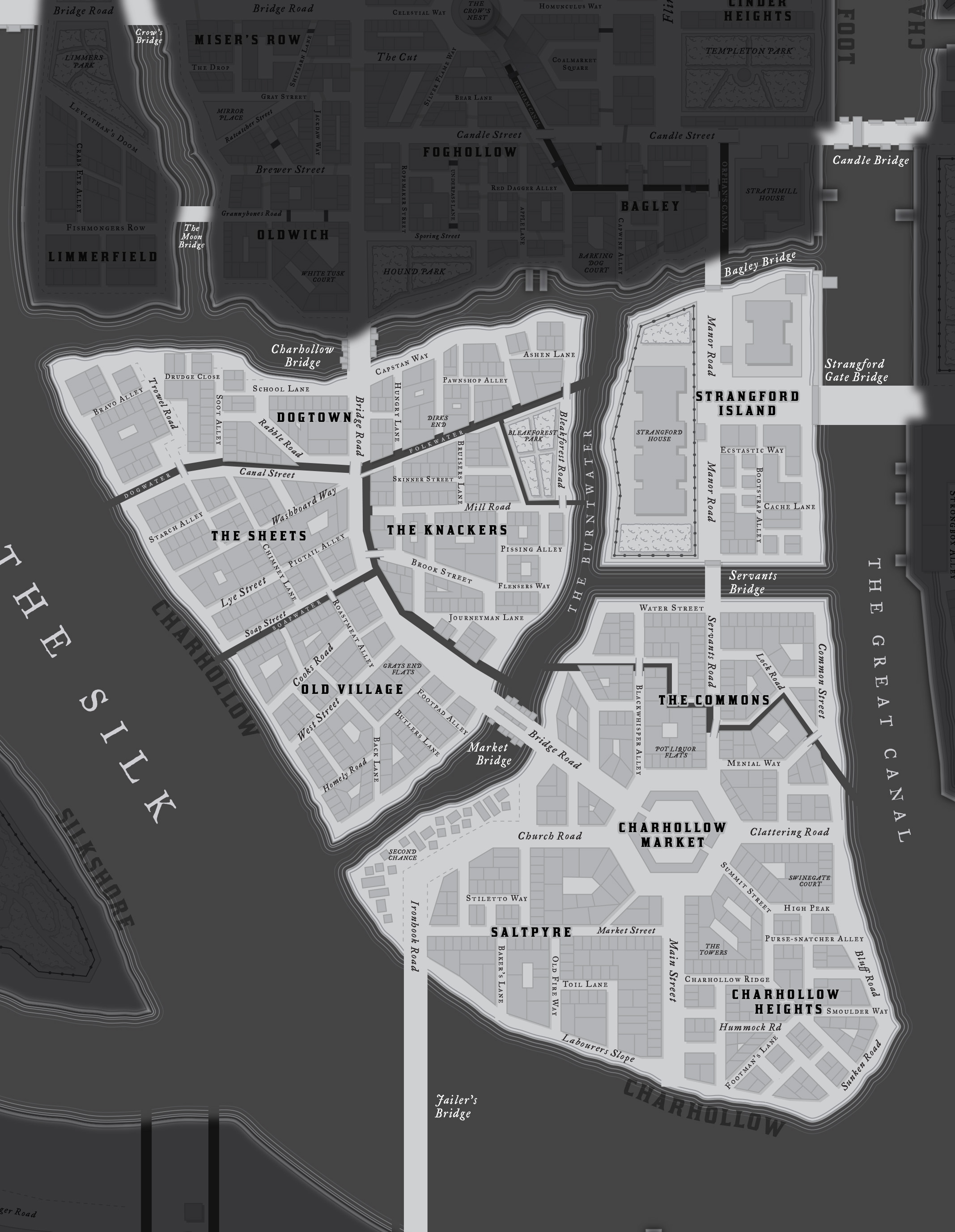 Формально все они служат городу и горожанам, но в Даскволе горожане не равны. Мелкие имперские аристократы, фабриканты, чиновники и толстосумы-нувориши населяют улицы Брайтстоуна и Короны, где широкие мостовые ярко освещены электроплазменными фонарями. Из местных ресторанов круглые сутки доносятся звуки живой музыки; там подают сладкие ирувийские вина, жирных угрей и хлеб из зерна, выращенного под светом плазменных ламп. Богатеи катят перед подсвеченными витринами на кэбах, запряжённых тягловыми козлами. В витринах на манекенах красуются вечерние платья и фраки из заморских тканей.