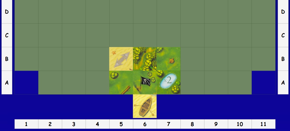 Результат броска 1D117: 28 - "A6 - клетка высадки" Результат броска 5D117: 15 + 50 + 66 + 13 + 78 = 222 - "A5 B5 B6 B7 A7"