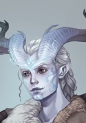 ссылкаВнешность:Среднего роста и спортивной комплекции полуэльфийка со, скорее всего, унаследованными от лунных эльфов синими волосами и красными глазами.