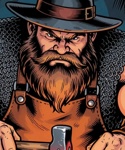 – Брухом зовут, Золотопалым. – нахмурил брови дварф и поправил шляпу, твёрдо решив ответить на все вопросы мелкого всадника. Дварф был одет в шкуры как орк, у него в руке было костяное копьё и тауировки на нём были вполне орочьи. Е ли бы не рост, цвет кожи и бородища можно было спутать Бруха с орком. За плечами висел рюкзак, а через плечё перекинут простенький деревянный лук, довольно потёртого вида.