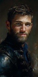 Одет в чёрные кожаные брюки и перчатки, сапоги с высоким голенищем, чёрную рубаху, поверх которой накинута новая, почти без царапин кираса и коричневый кожаный тренч.