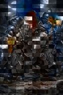 Внешность:Фаргрим крепкий, сильный дворф с серыми глазами и рыжими ухоженными волосами, бородой и усами. Украшения для волос и бороды столь приятные дворфскому сердцу он носит только в церемониальных случаях(но всегда своего нового клана) и когда это важно для паствы и дворфийского общества считая это излишним щегольством, всегда тщательно ухаживая за волосами, бородой и усами. Он хоть и приземист по людским меркам, но очень высок для дворфов. Одевается чаще всего в серые штаны, рубаху и застегнутую теплую куртку, поверх которых надевает серую рясу и кожаный пояс с портупеей через плечо(и с кармашками для необходимого). На шее носит магический священный символ. На ногах носит сапоги. Почти всегда, даже на службах и у больных(но не дома) он носит магический наборный доспех, который который добыл в странствиях и который связан с духом защищающего его небожителя являющегося в виде дворфа с двуручным мечом. Сияющий магический боевой молот развеивающий даже самую глубокую тьму и вселяющий надежду тем к кому он идет на помощь он носит на поясе в тех случаях, когда еще не пришло время пустить его в дело. Всегда на его левой руке находится начищенный до блеска щит с эмблемой того ответвления церкви Единого, которая служит среди дворфов и проповедует им. На его поясе сбоку всегда есть пара фляг с отменным дворфийским пивом(для себя и собеседника), сумка с некоторыми необходимыми вещами, едой для подаяний и прочим. Когда он собирается в поход за его плечами находится рюкзак со всем необходимым.