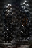 Внешность:Одет в черный костюм, черные сапоги, чешуйчатый доспех, щит, рюкзак.